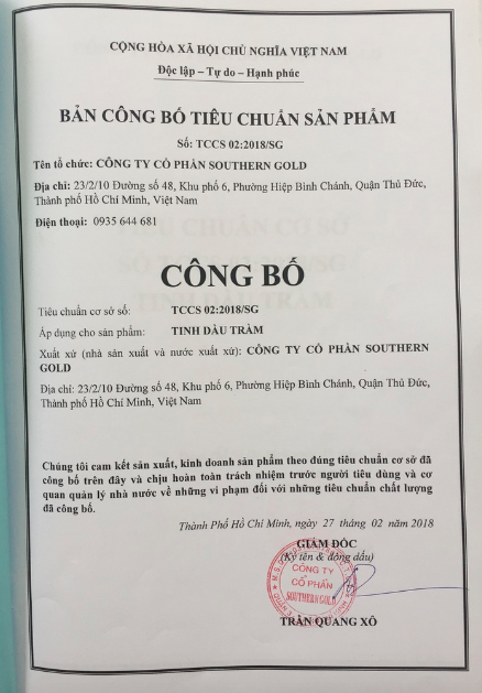1. Mỗi sản phẩm của tinh dầu Phương Nam đều đã được kiểm định bởi trung tâm đo lường chất lượng miền nam, đảm bảo về yêu cầu chất lượng trong mỗi sản phẩm đến tay bạn.